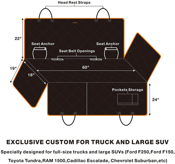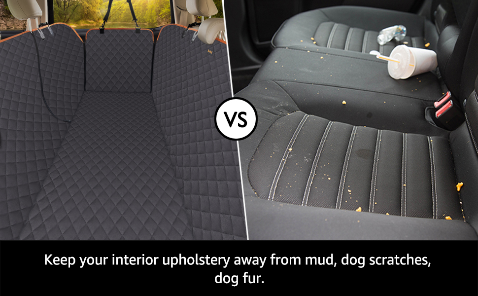• KEEP YOUR BACK SEAT CLEAN-The dog seat cover for trucks is keep almost all of the sand, hair, the liquid contained making it easier to clean. Prevent your dog from trying to climb up to the front seat. Specially designed for trucks and large SUVs.
