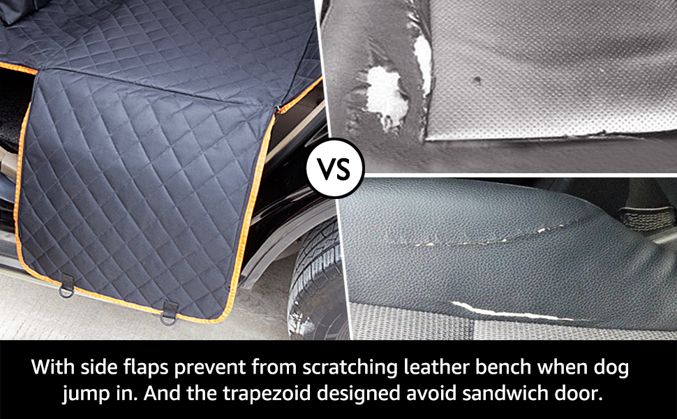 • SIDE FLAP&NONSLIP DESIGN-The side flaps help your dog easier to get in or out and prevent scratching the back seat when the dog goes in the car. The rubberized anti slide bottom and seat anchors prevent the dog seat cover slip around on the beach.